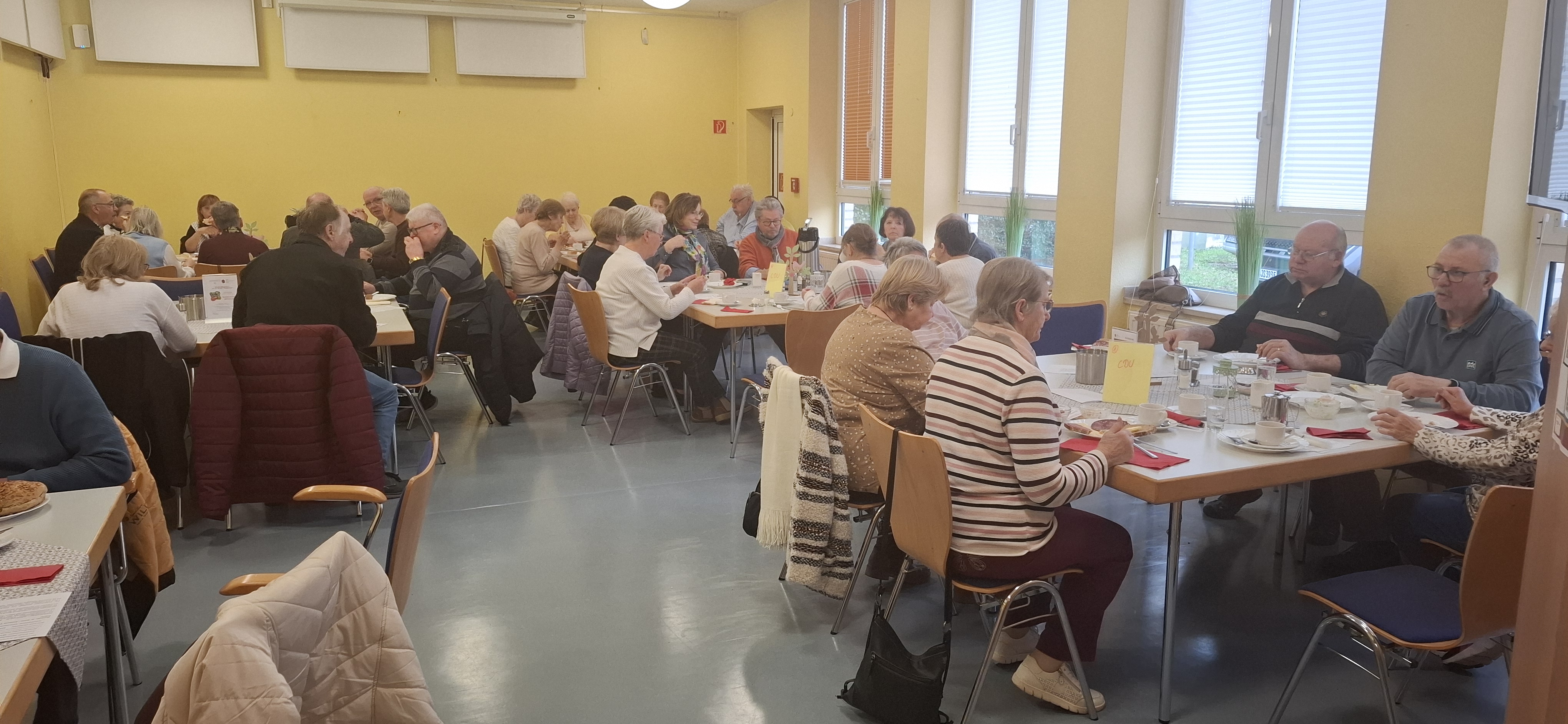 36 Teilnehmerinnen und Teilnehmer folgten der Einladung der Senioren-Union / der Aktiven ab 60 zum gemeinsamen Frühstück. In geselliger Runde stellte Heinz König die Aktivitäten der Gruppe "Senioren helfen" vor.